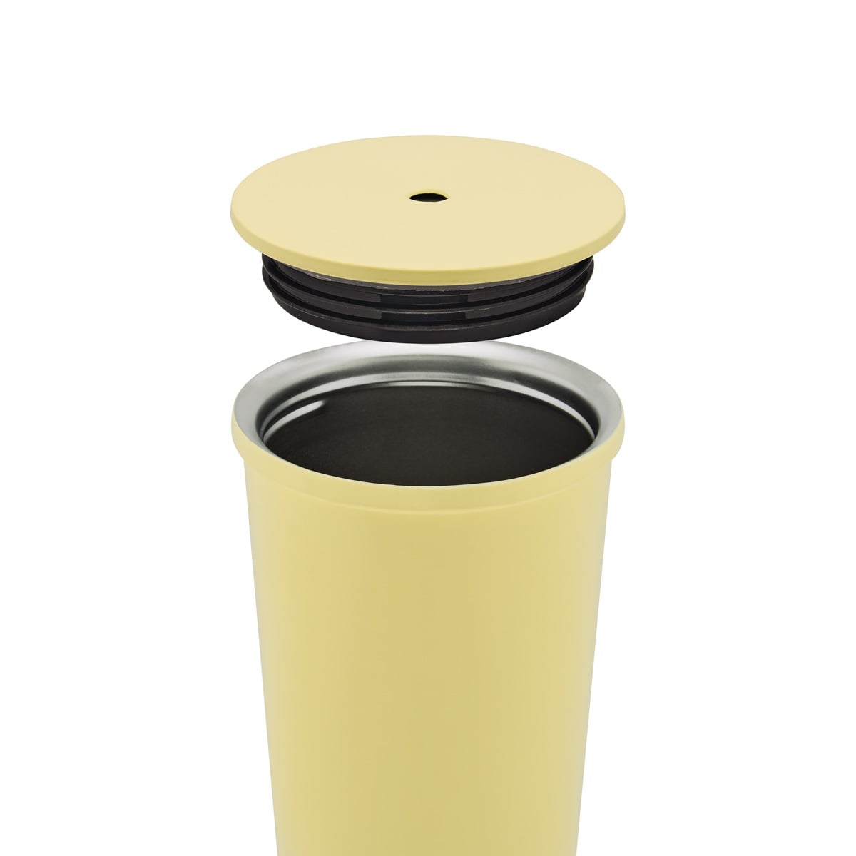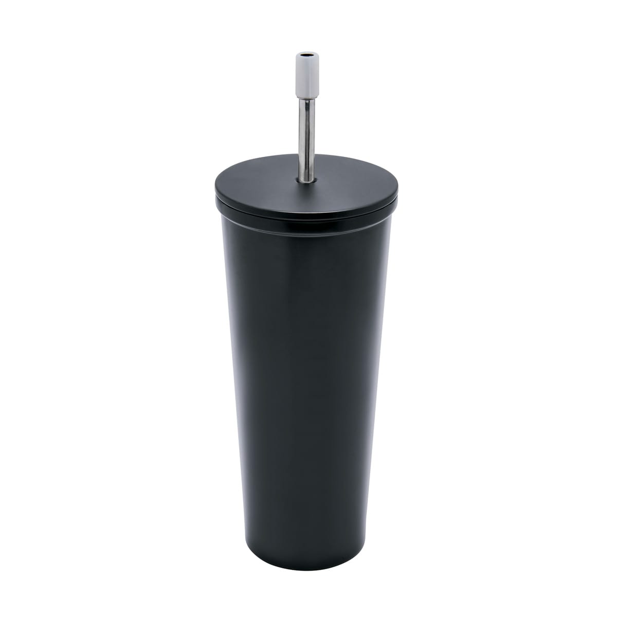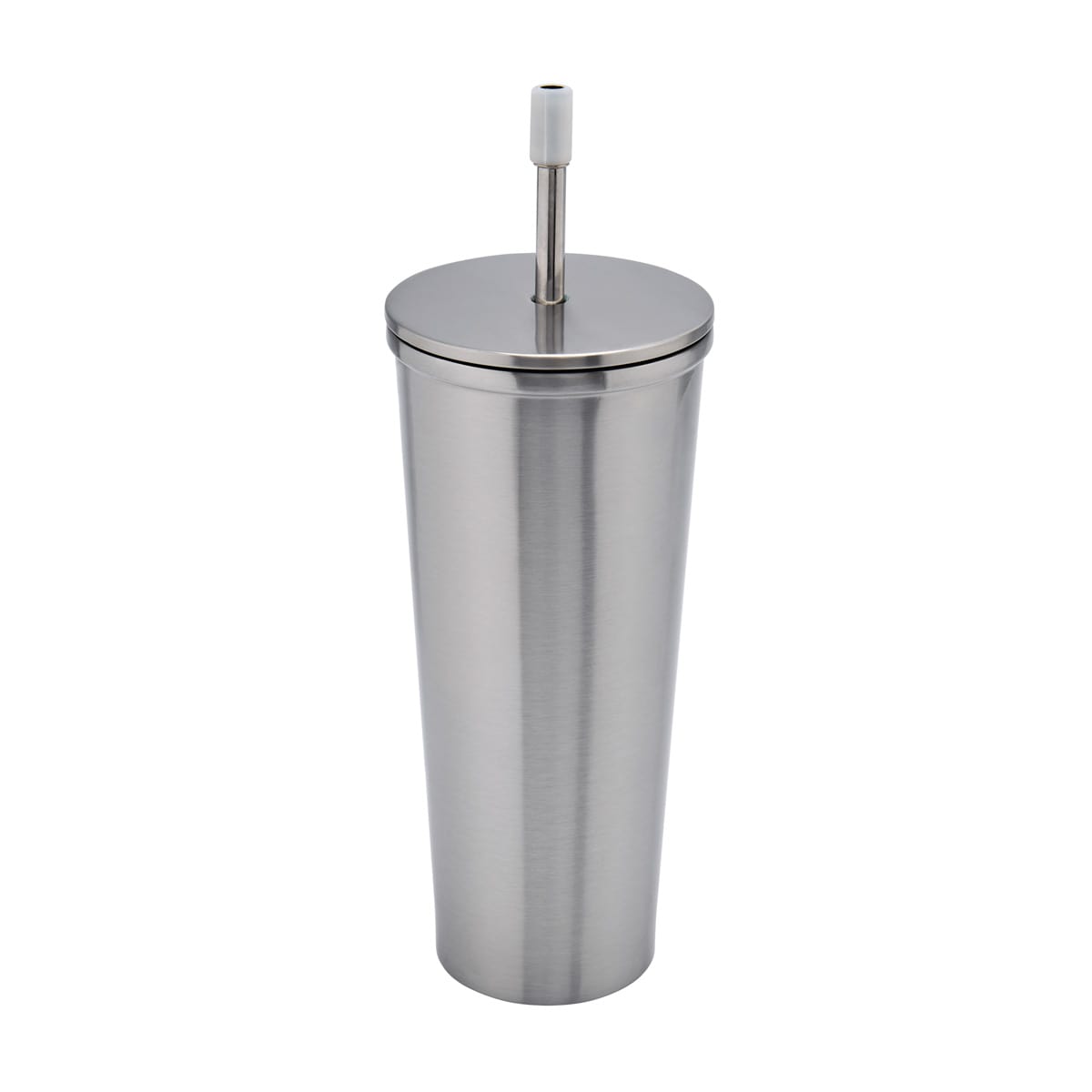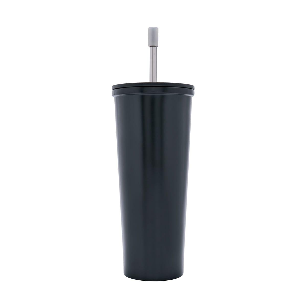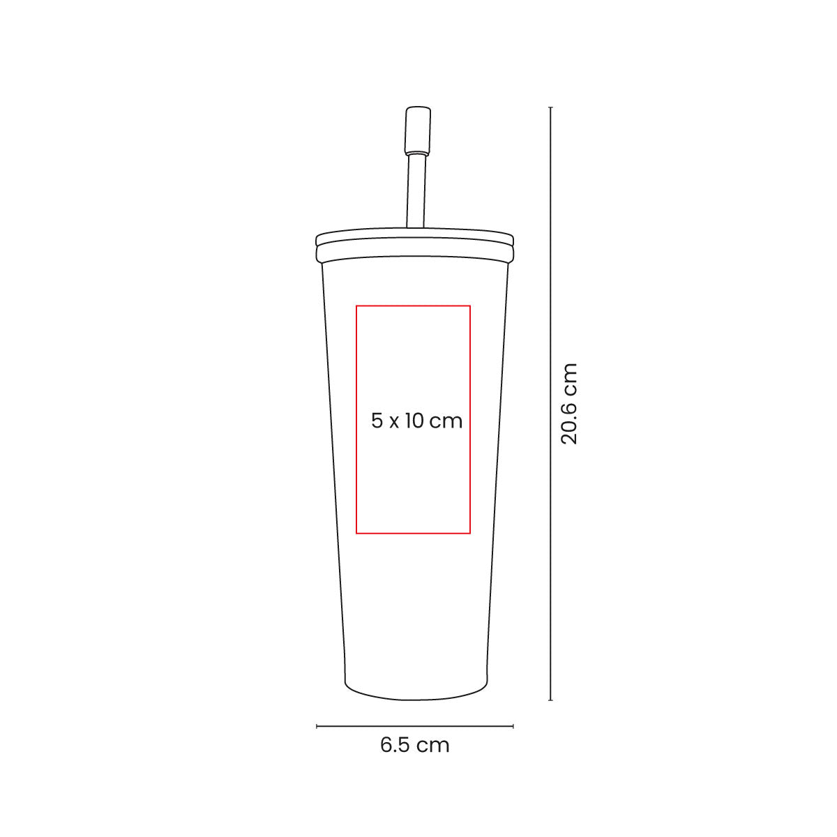 Doble pared. Cerrado al vacio. Pared interna y externa de acero inoxidable. Tapa de metal con plastico y cierre de rosca. Mantiene temperatura caliente 8 hrs y temperatura fria 10 hrs aproximadamente. Incluye popote metalico con boquilla de silicon. Caja individual incluida.