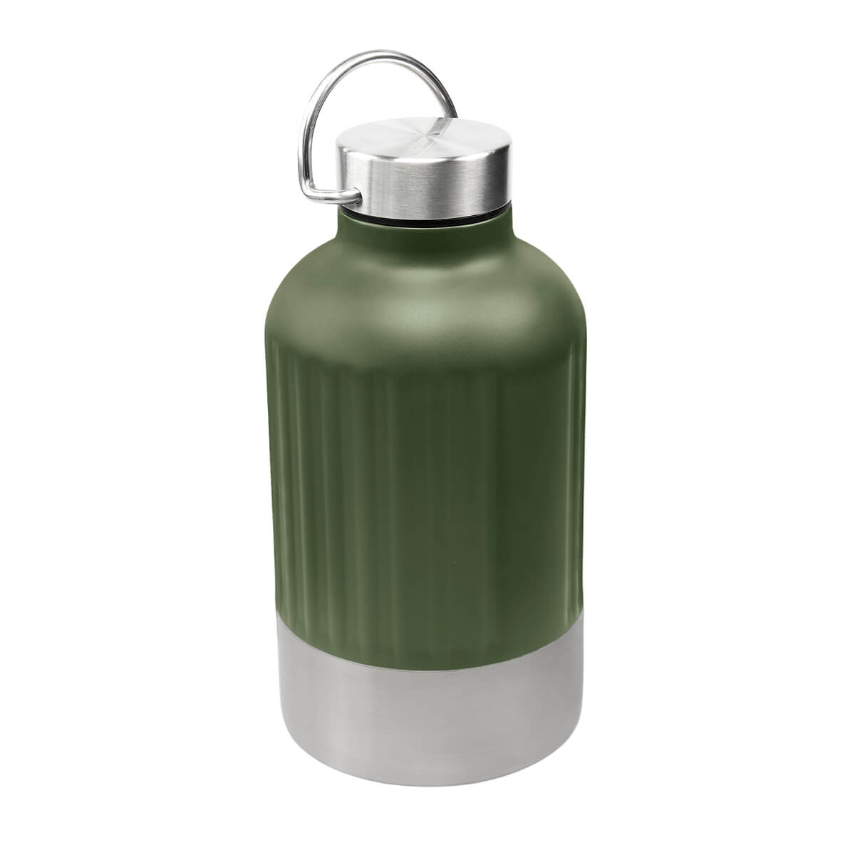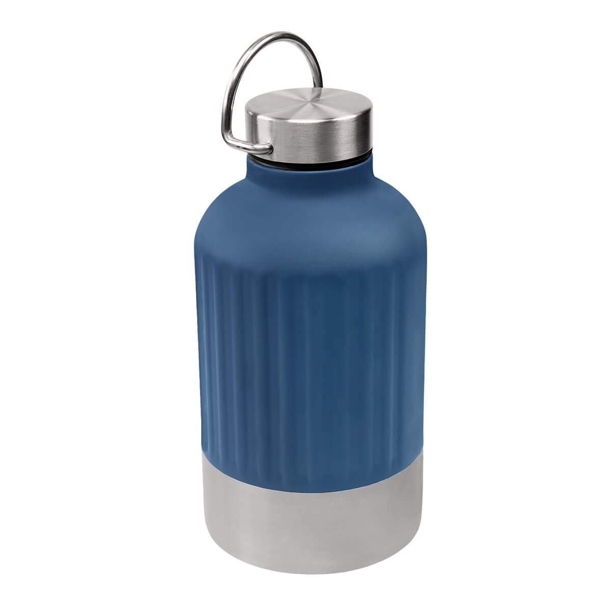 Termo doble pared. Cerrado al vacío. Pared interna y externa de acero inoxidable. Tapa con sistema de rosca compuesta de plástico y acero inoxidable. Incluye un asa metálica para transportar con mayor comodidad. Su diseño bitono, combina color y modernidad, mientras que su textura metálica con patrón de líneas verticales, le da un toque original y vanguardista. Mantiene la temperatura caliente por 6 hrs y temperatura fría por 8 hrs. Capacidad 23 Oz. Base de 9 cm de diámetro. Incluye caja individual.