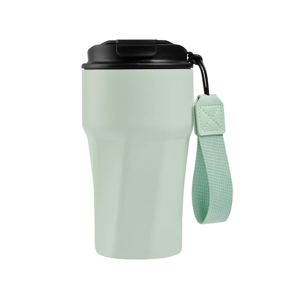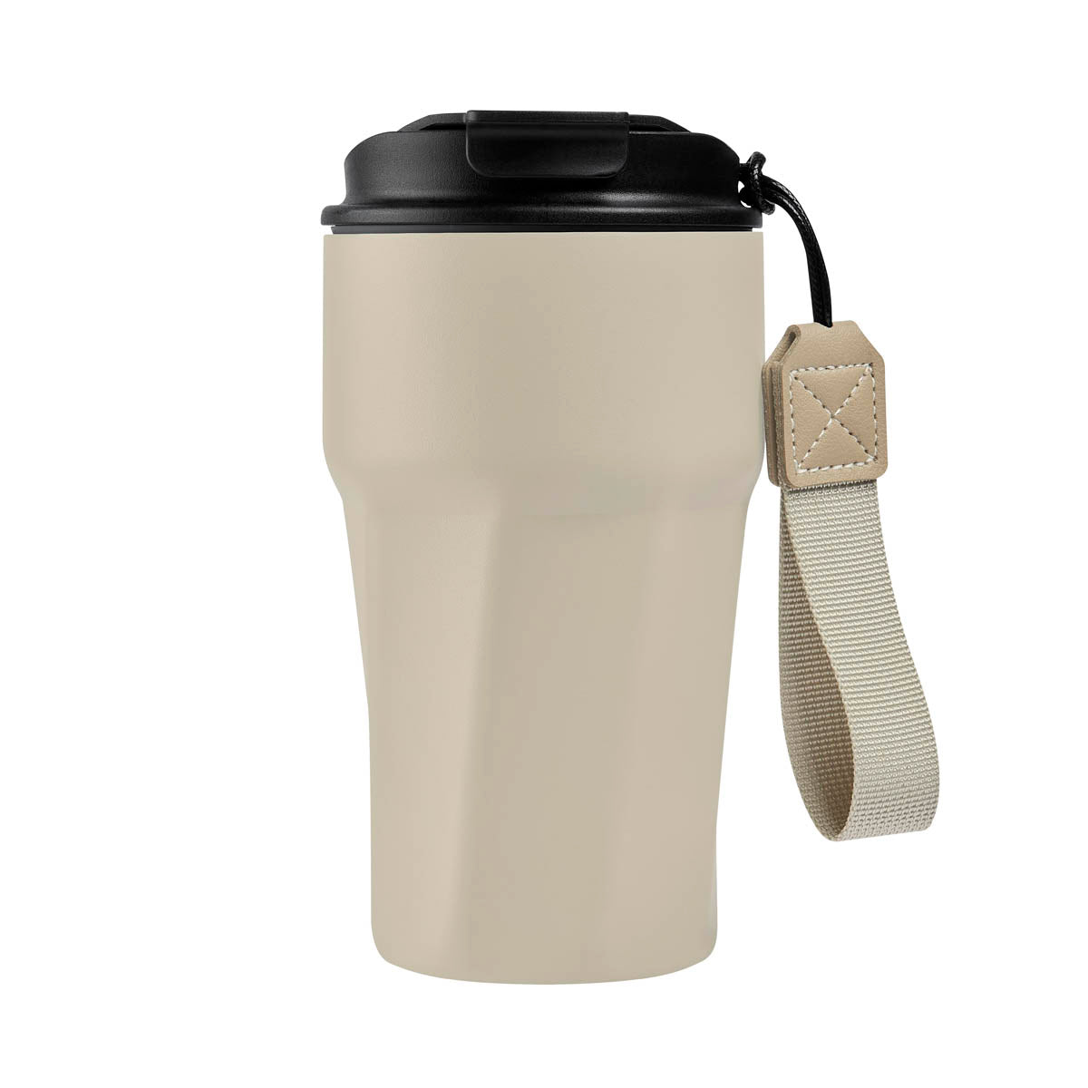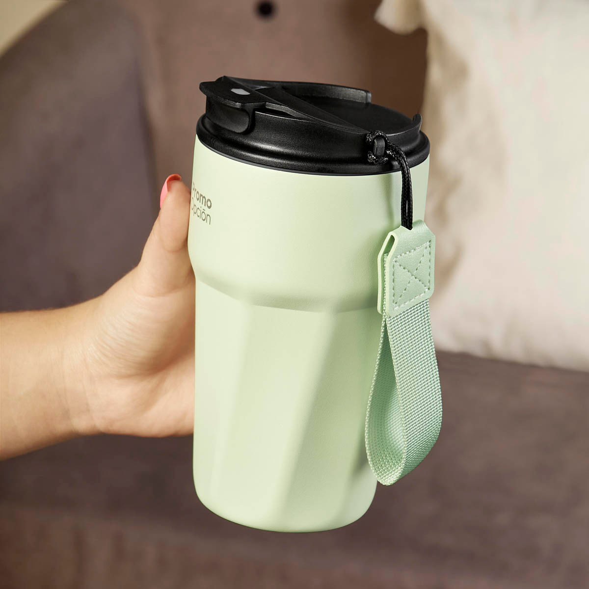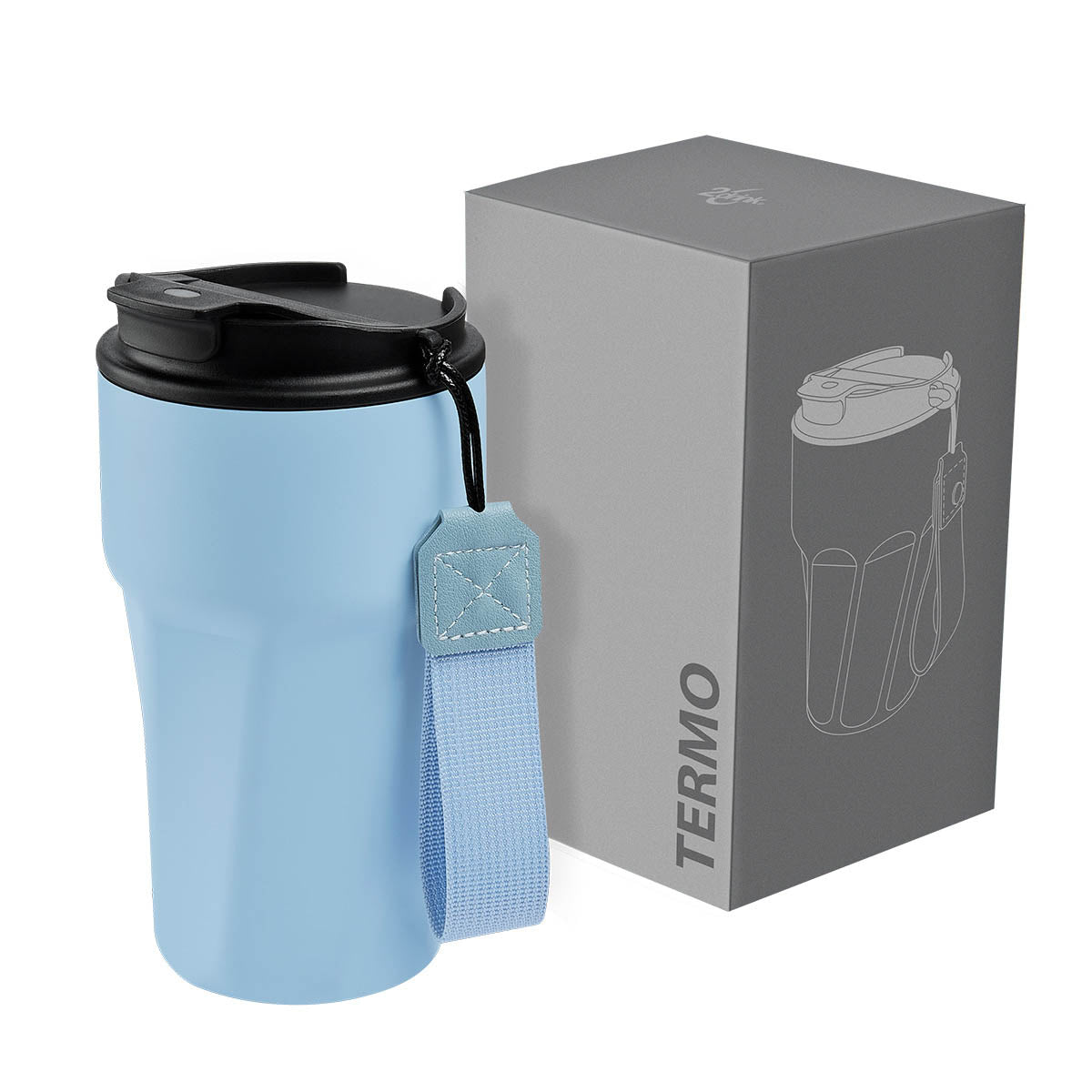 Termo doble pared. Cerrado al vacio. Pared interna y externa de acero inoxidable. Terminado rugoso tipo powder. Tapa de plastico con cierre de rosca, sobretapa con sistema push para evitar derrames. Ademas, cuenta con un asa de poliester para una comoda transportacion. Mantiene la temperatura caliente por 8 hrs y temperatura fria por 12 hrs. Capacidad de 15 Oz. Base de 7.2 cm de diametro. Incluye caja individual.