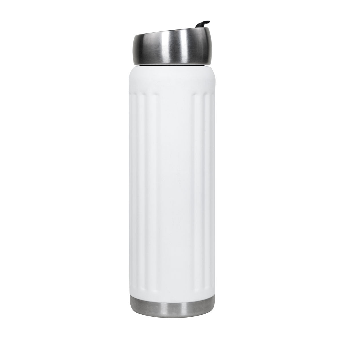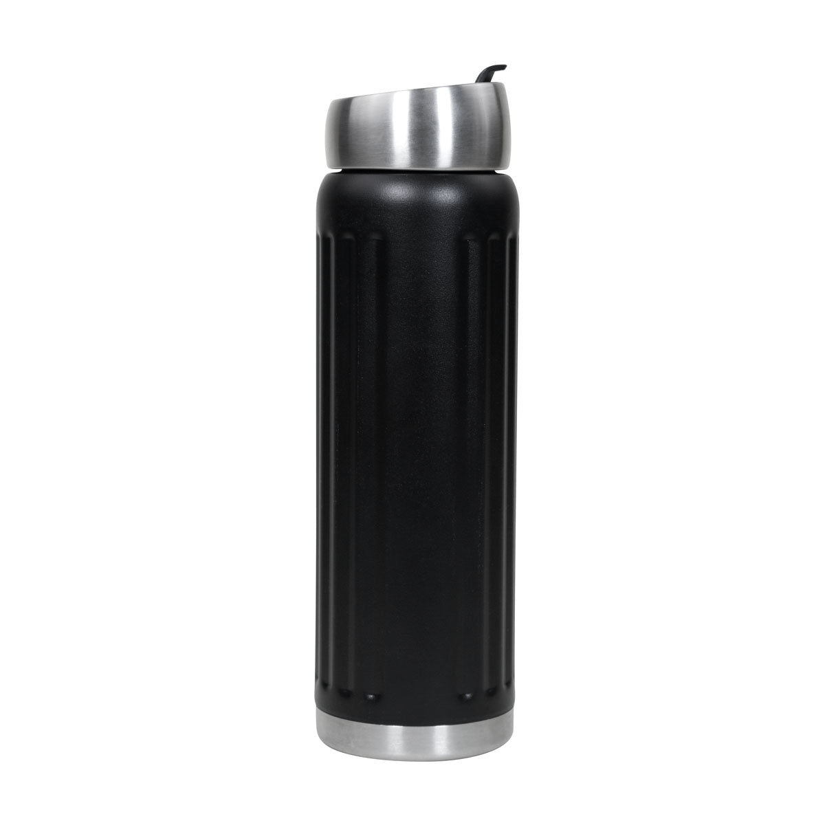 Doble pared. Cerrado al vacío. Pared interna y externa acero inoxidable. Tapa metálica con sistema de rosca. Sobre tapa de plástico con sistema de push. Terminado rugoso. Mantiene temperatura caliente 6 hrs y temperatura fría 12 hrs aproximadamente. Incluye caja individual