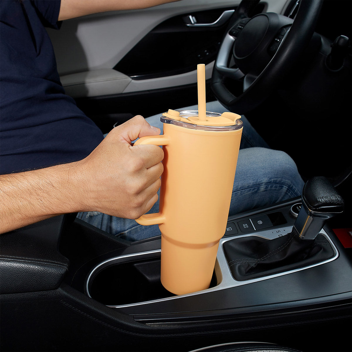 Doble pared. Pared interna y externa de plastico. Tapa de plastico con cierre de push. Sobretapa de silicon con ranura especial para popote. Incluye popote y caja individual.