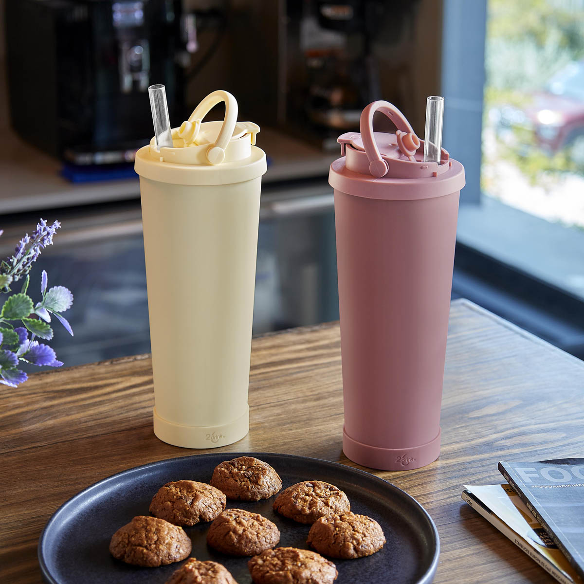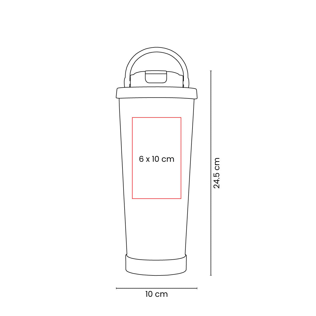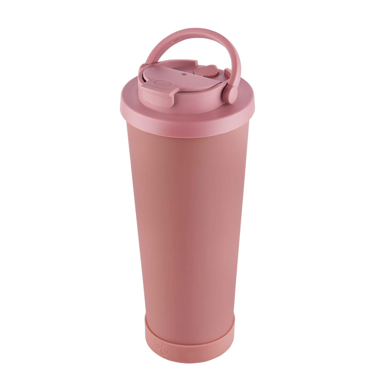 Termo doble pared. Cerrado al vacio. Pared interna y externa acero inoxidable. Terminado tipo rubber que lo hace suave al tacto. Su tapa versatil con cierre de rosca te permite disfrutar de tus bebidas de dos maneras diferentes; por medio de su convencional sobre tapa con sistema push o bien, usando la ranura para popote con tapon. Incluye un popote con doble ancho de plastico, ideal para cualquier bebida. Ademas, cuenta con un cepillo, que te ayudara a mantenerlo limpio. Su diseno incorpora un asa que facilita llevarlo a todos lados y su base removible de silicon antiderrapante, evitara al maximo raspaduras. Mantiene la temperatura caliente por 6 hrs y la temperatura fria por 12 hrs. Capacidad de 24 Oz. Base de 7 cm de diametro. Incluye caja individual.