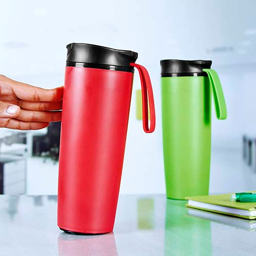 Doble pared. Pared interna acero inoxidable, pared externa plástico. Tapa de plástico con boquilla, sobre tapa con cierre a presión y asa de silicón. Chupón de succión en la base que permite la fijación a la superficie evitando el derrame por accidente. Incluye caja individual. Este producto por ser últimas piezas puede presentar alguna variación, no se aceptan devoluciones.