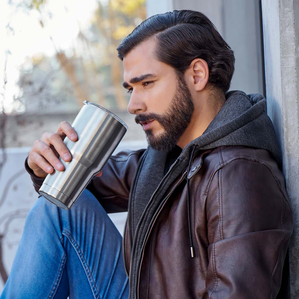 Doble pared. Cerrado al vacio. Pared interna y externa acero inoxidable.Tapa de plastico con valvula de seguridad. Mantiene temperatura caliente 6 hrs y temperatura fria 8 hrs aproximadamente. Incluye caja individual.