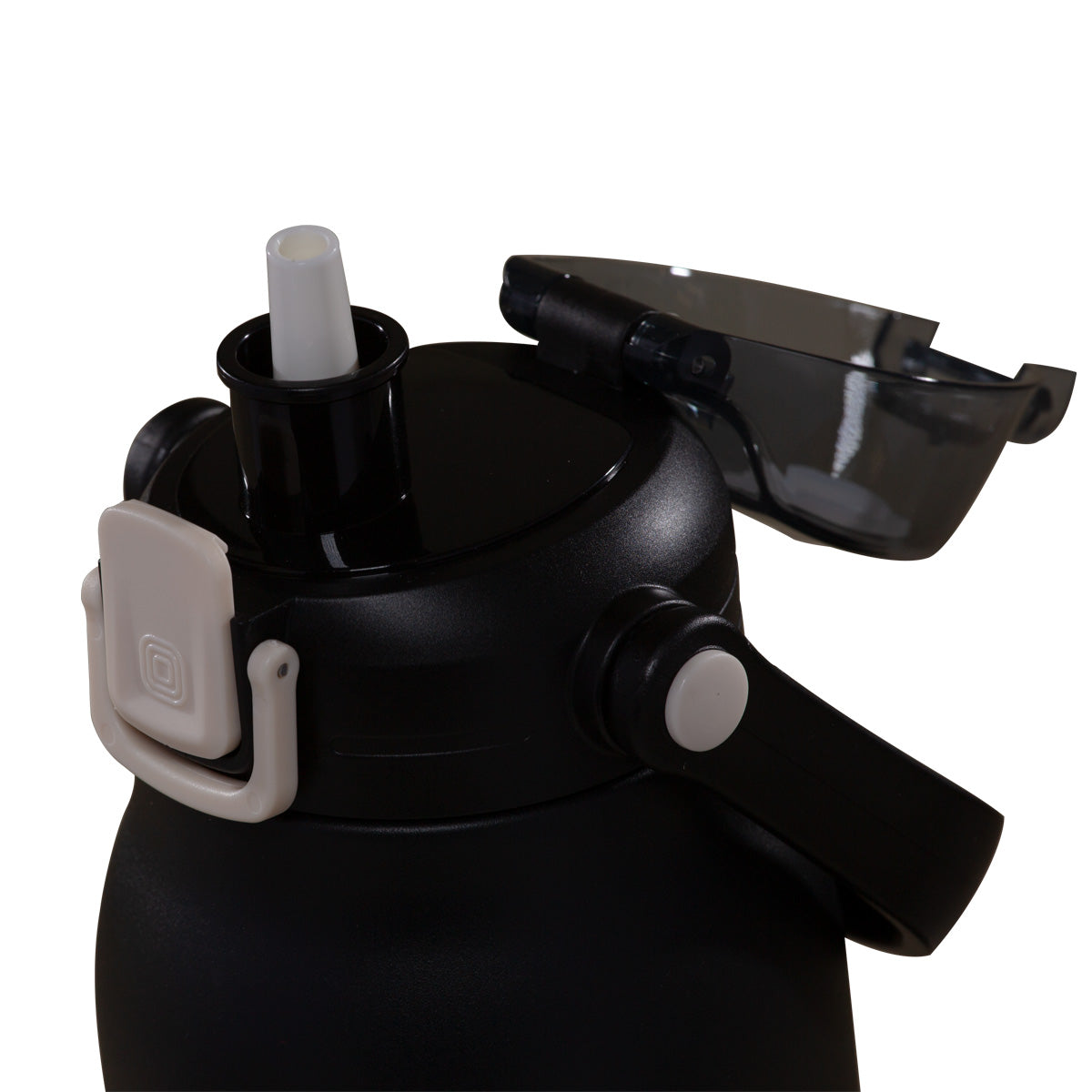 Doble pared. Cerrado al vacio. Pared interna y externa de acero inoxidable. Terminado rugoso. Tapa de plastico con sistema de rosca. Sobretapa con cierre push y seguro antiderrame. Asa plegable incluida. Mantiene temperatura caliente hasta 6 hrs y temperatura fria hasta 12 hrs. Caja individual incluida.