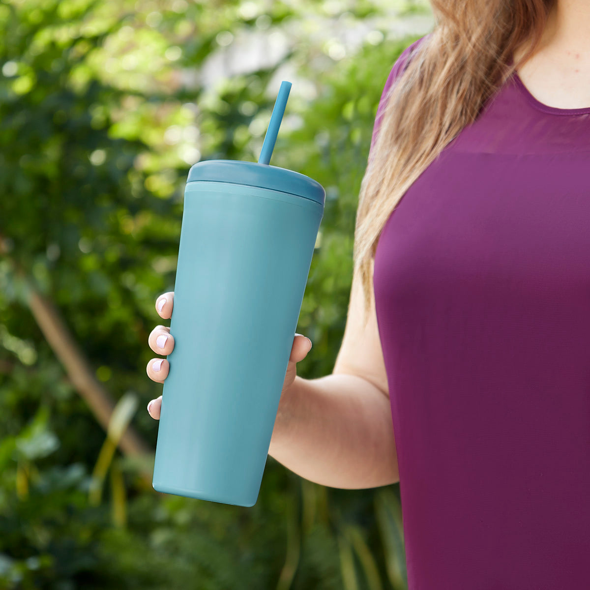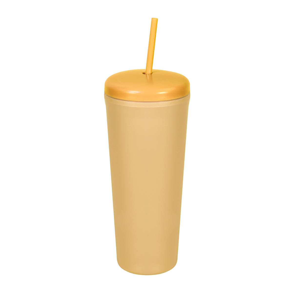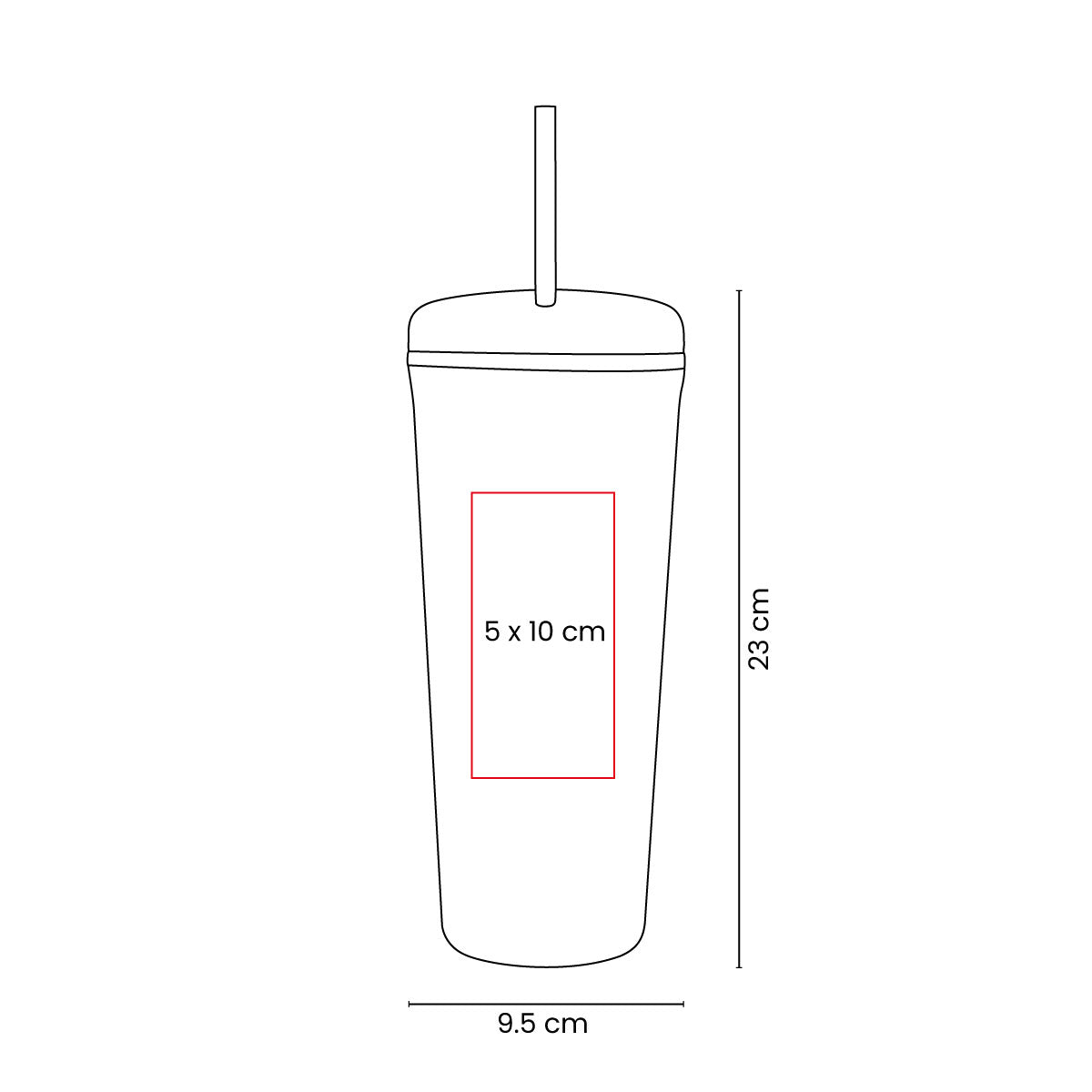 Doble pared. Pared interna y externa de plastico. Tapa de plastico con cierre de rosca, incluye popote de plastico. Su singular diseno y su tapa hermetica, garantizan que puedas disfrutar de tus bebidas favoritas en cualquier lugar, sin preocuparte por derrames. Capacidad de 22 Oz. Base de 6.7 cm de diametro. Incluye caja individual.