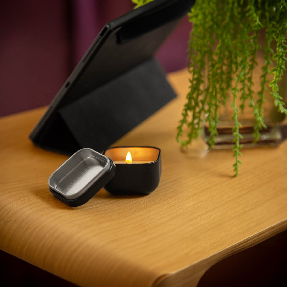 Vela con aroma a vainilla. Incluye estuche de metal.